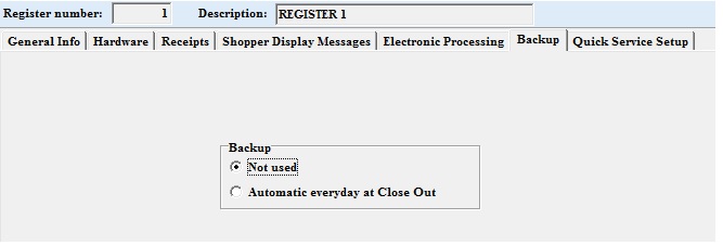 In Manager/Management/Registers/Backup select the radial "Automatic everyday at Close Out".